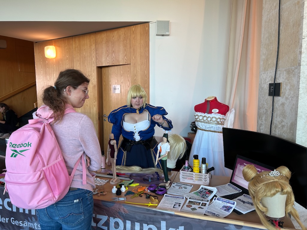 Yasmine vertritt den Technikstützpunkt auf der SAM. Wir werben für unsere AG- und Workshopangebote.