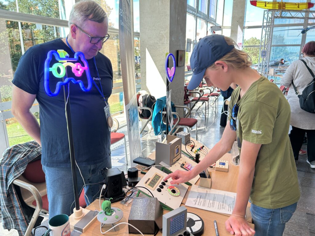 Wieder eine tolle MakerFaire. In den 8 Stunden Öffnungszeit gab es gut 2100 Besucher bei 25 Ausstellern. Das waren 4,3 Besucher pro Minute! 2023 waren es 1600 und 2024 1014 Besucher bei 6 Stunden Öffnungszeit.